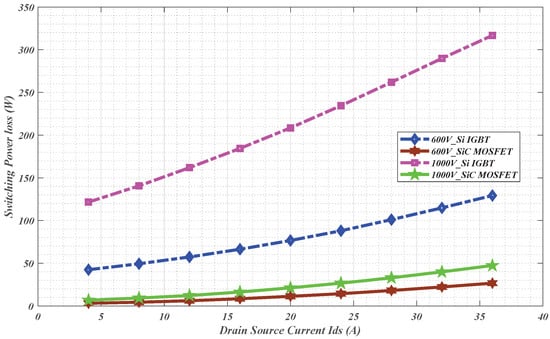 10. Albanna, A.; Malburg, A.; Anwar, M.; Guta, A.; Tiwari, N. Performance Comparison and Device Analysis Between Si IGBT and SiC MOSFET. In Proceedings of the 2016 IEEE Transportation Electrification Conference and Expo (ITEC), Dearborn, MI, USA, 27–29 June 2016; pp. 1–6. [Google Scholar] [CrossRef]