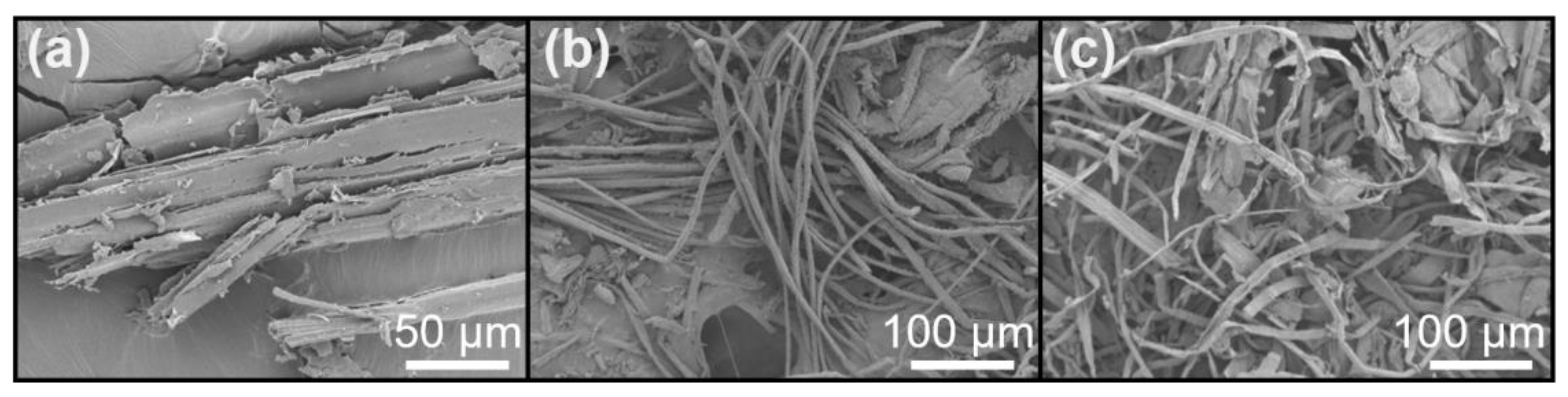 - Han, G.; Deng, J.; Zhang, S.; Bicho, P.; Wu, Q. Effect of Steam Explosion Treatment on Characteristics of Wheat Straw. Ind. Crops Prod. 2010, 31, 28–33. [Google Scholar] [CrossRef]