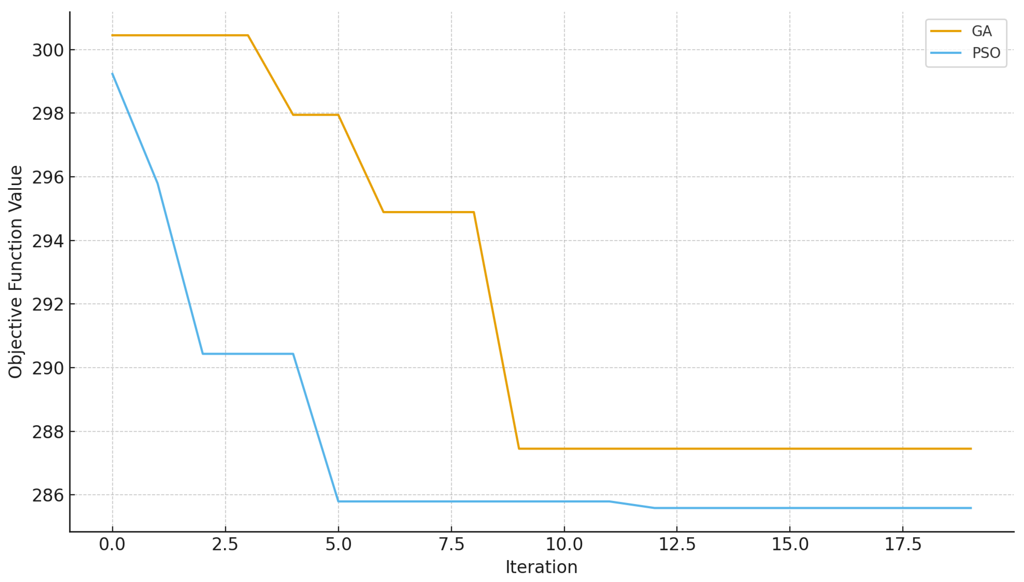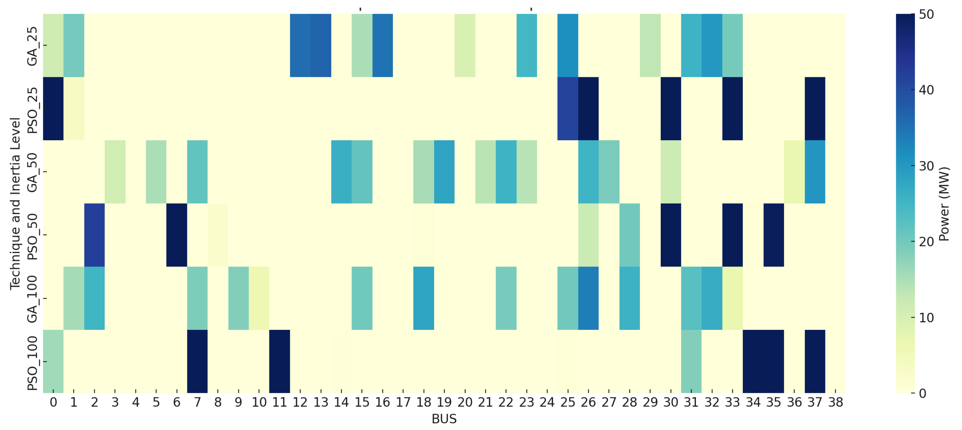 Section 4 presents the results obtained from applying GA and PSO to the optimization problem under various inertia scenarios.