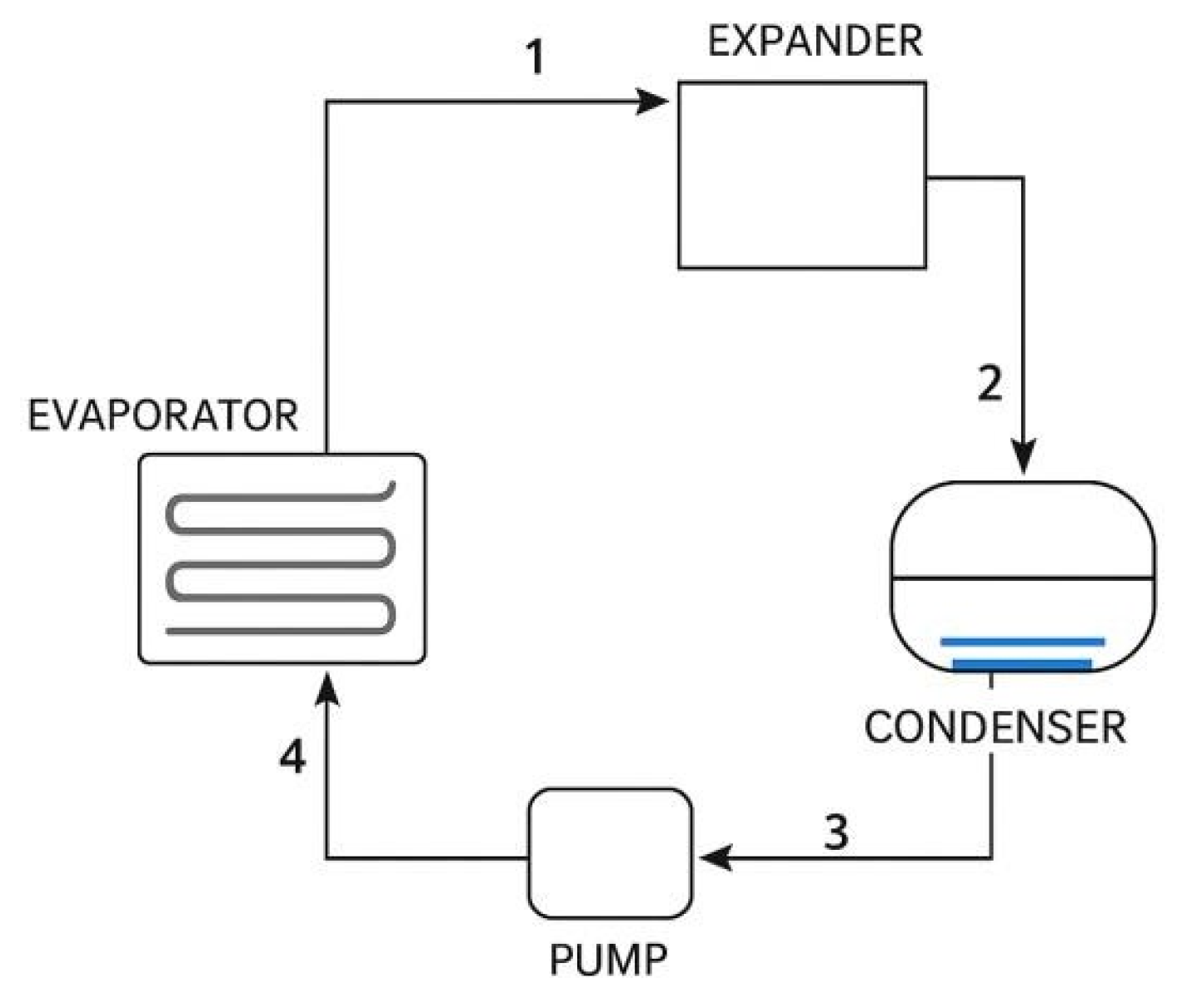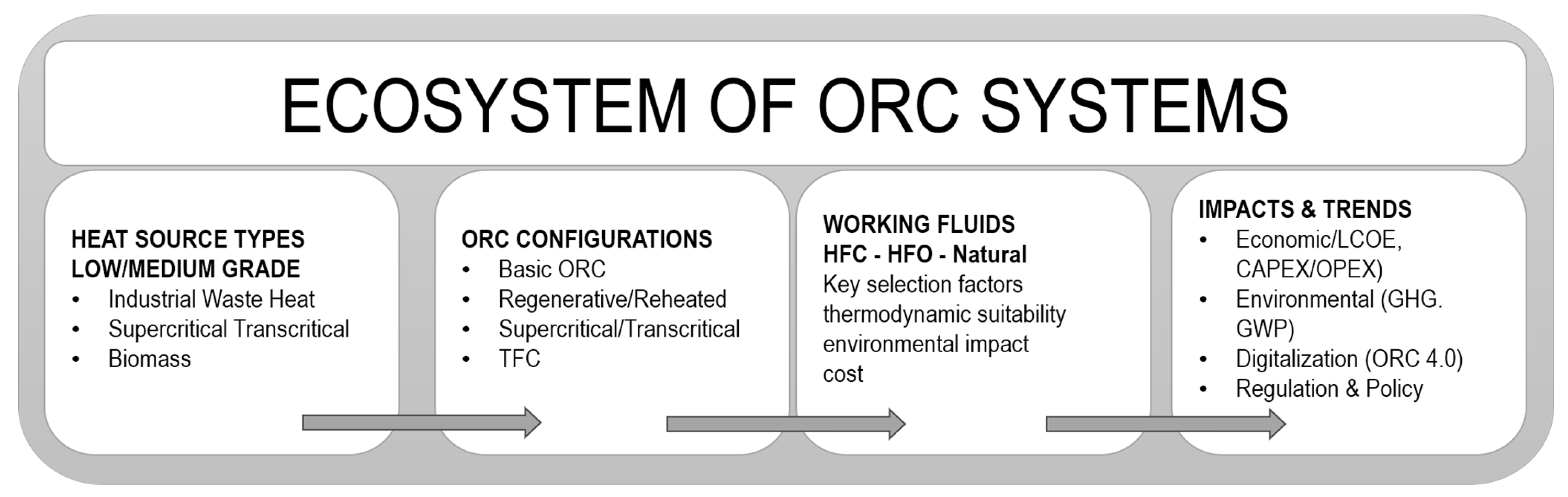 - Organic Rankine Cycles (ORC). Fluorocarbons. Available online: https://www.fluorocarbons.org/applications/organic-rankine-cycles/ (accessed on 10 July 2025).