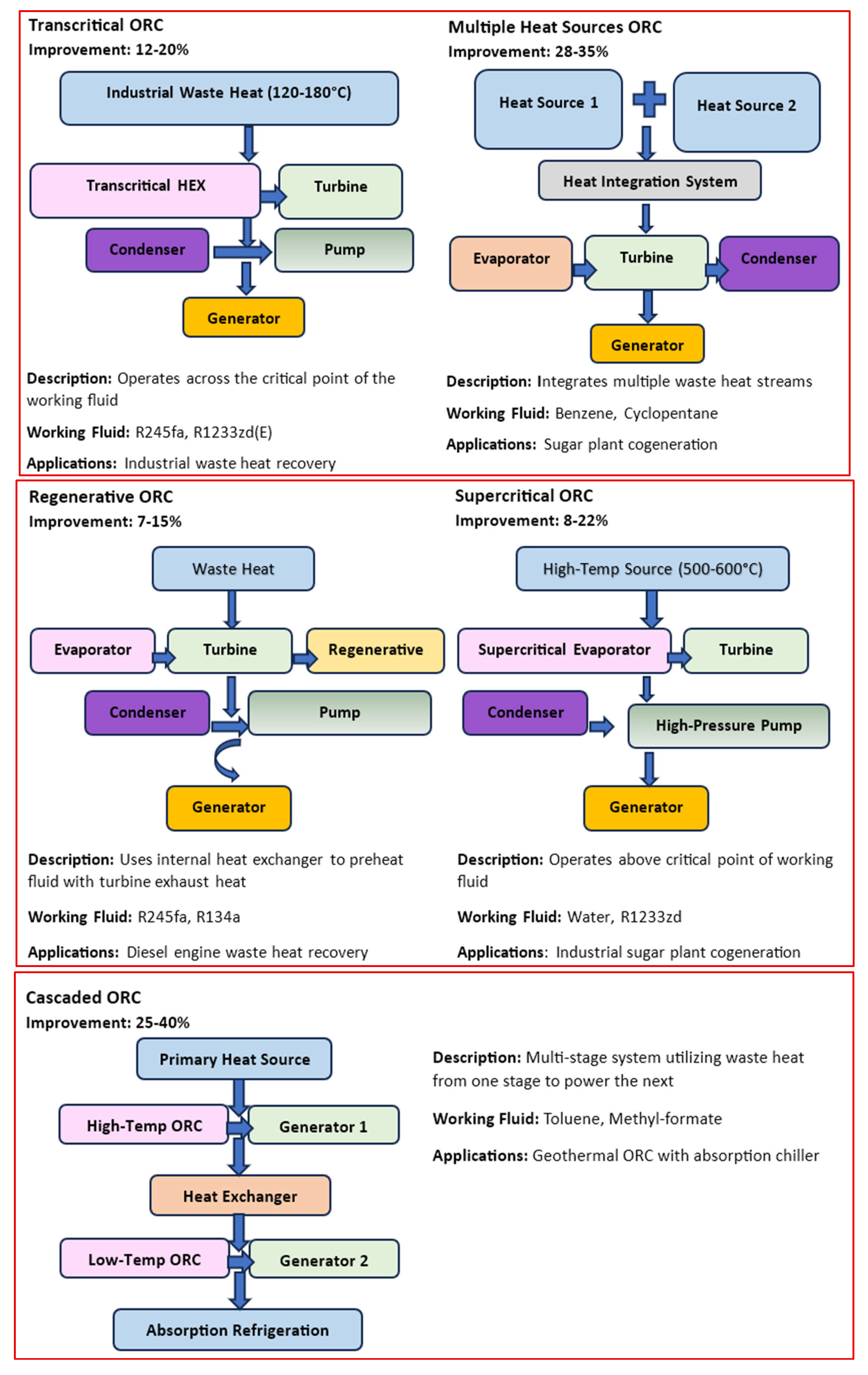 | Configuration ORC | Description | Working Fluid | Improvement (%) |