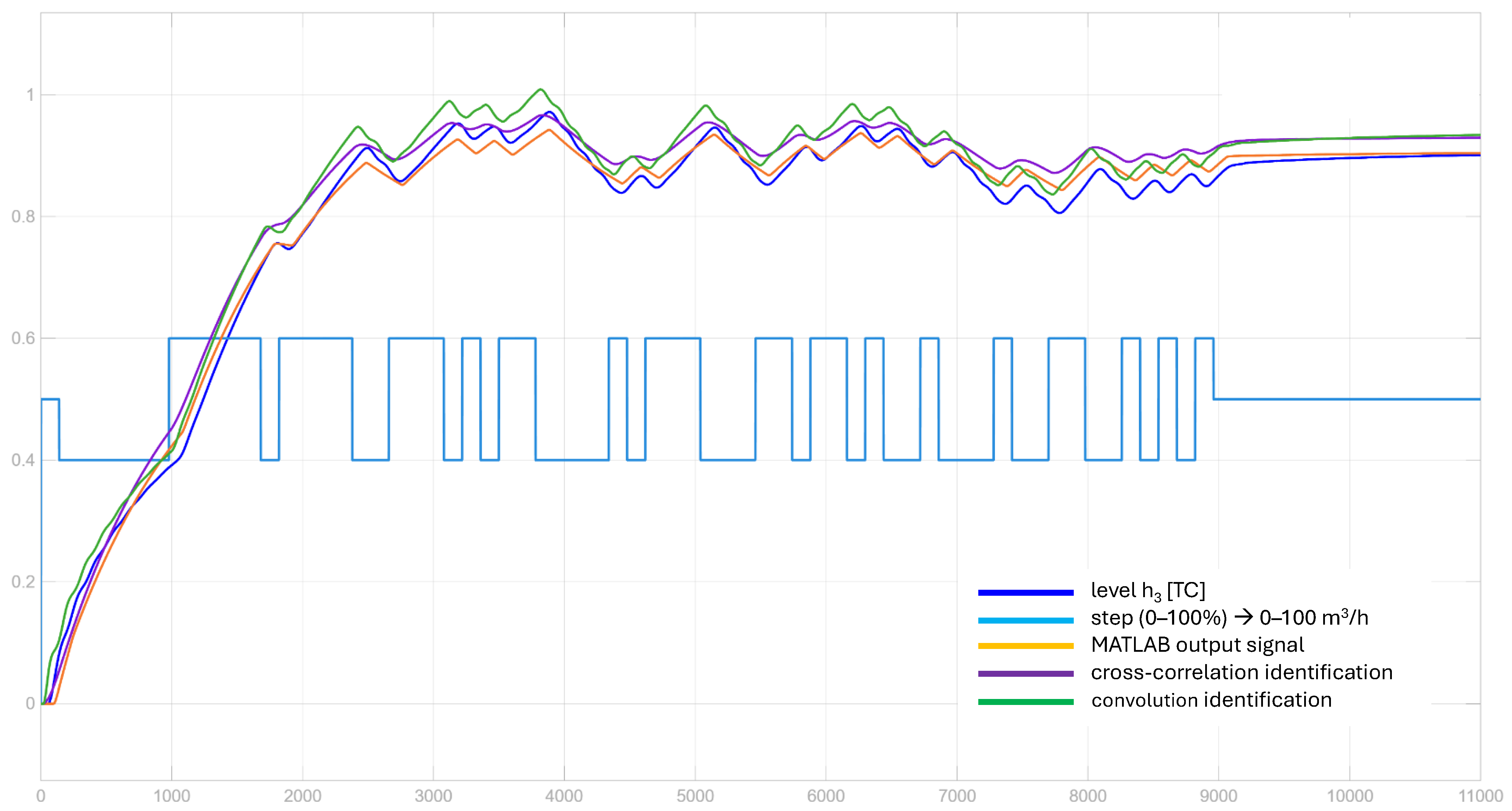 The real process is identified using two methods: the frequency response and the correlation algorithm. The plant is excited with the pseudo random binary signal (PRBS) [34]. Due to its nature, the PRBS exhibits a wide bandwidth. The excitation covers a wide frequency range, which makes the identification more accurate. Once the experiment is accomplished, the data obtained are used by the frequency-based method using fast Fourier transform (FFT) together with correlation analysis [34].