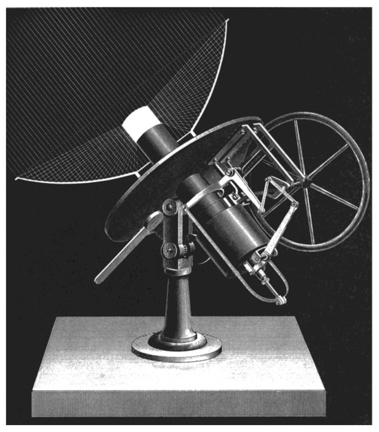 Swedish engineer and inventor John Ericsson (1803–1889) is considered the first person to couple a parabolic mirrored dish to a heat engine (see Figure 1, [1]) transforming solar energy into mechanical energy through a thermodynamic cycle (resembling the Stirling cycle) in the decade of 1880s and it was named ‘solar motor’. Nevertheless, this form of power production was more complex and more expensive than burning coal. The boom in vapor engines halted the development of this model for over a century. Due to the oil crisis of 1973, a renewed interest in dish collectors arose and countries as the United States, Australia, Germany, and France began their own research programs on the development of Concentrated Solar Power (CSP) technologies [2].