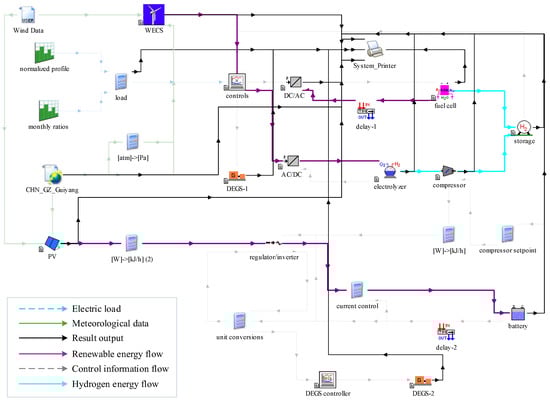 This study inputs the optimized capacity configuration data of the wind–solar–hydrogen system, along with the corresponding DC load profile, solar radiation intensity, and ambient temperature data into the TRNSYS simulation model. This methodology aims to conduct an in-depth investigation into the transient thermal performance of the system under cold climate conditions.