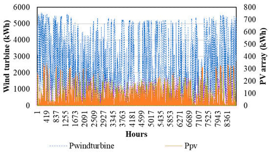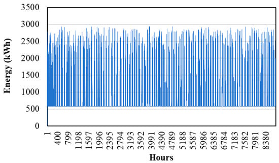 Based on the simulation run of the TRNSYS model under the specified operating and climatic conditions, the annual output power curve of the power supply components detailed in Figure 4 and the annual load profile of the PEMFC detailed in Figure 5 were generated. These results provide a critical basis for evaluating the system’s thermal behavior and energy distribution throughout the year.