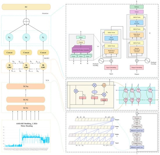 - Gautam, S.K.; Shrivastava, V.; Udmale, S.S. Enhanced Electricity Forecasting for Smart Buildings Using a TCN-Bi-LSTM Deep Learning Model. Expert Syst. 2025, 42, e70000. [Google Scholar] [CrossRef]