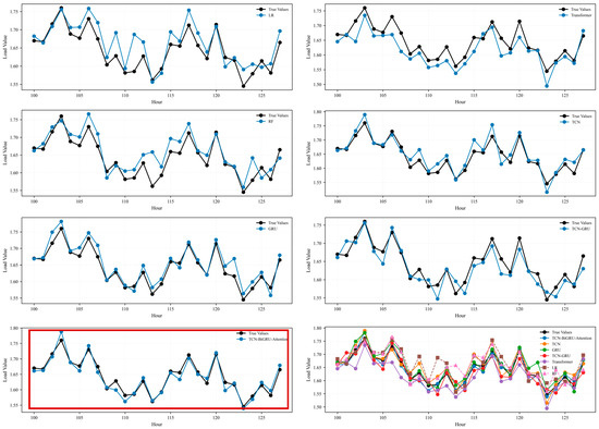 From a practical perspective, the proposed TCN-BiGRU-Attention model is suitable for deployment in both day-ahead and intra-day HVAC load forecasting scenarios. In an online application, the model can be used to generate rolling 24-h forecasts every hour based on the most recent 168 h of measurements, providing decision support for optimal operation scheduling and demand-side management.