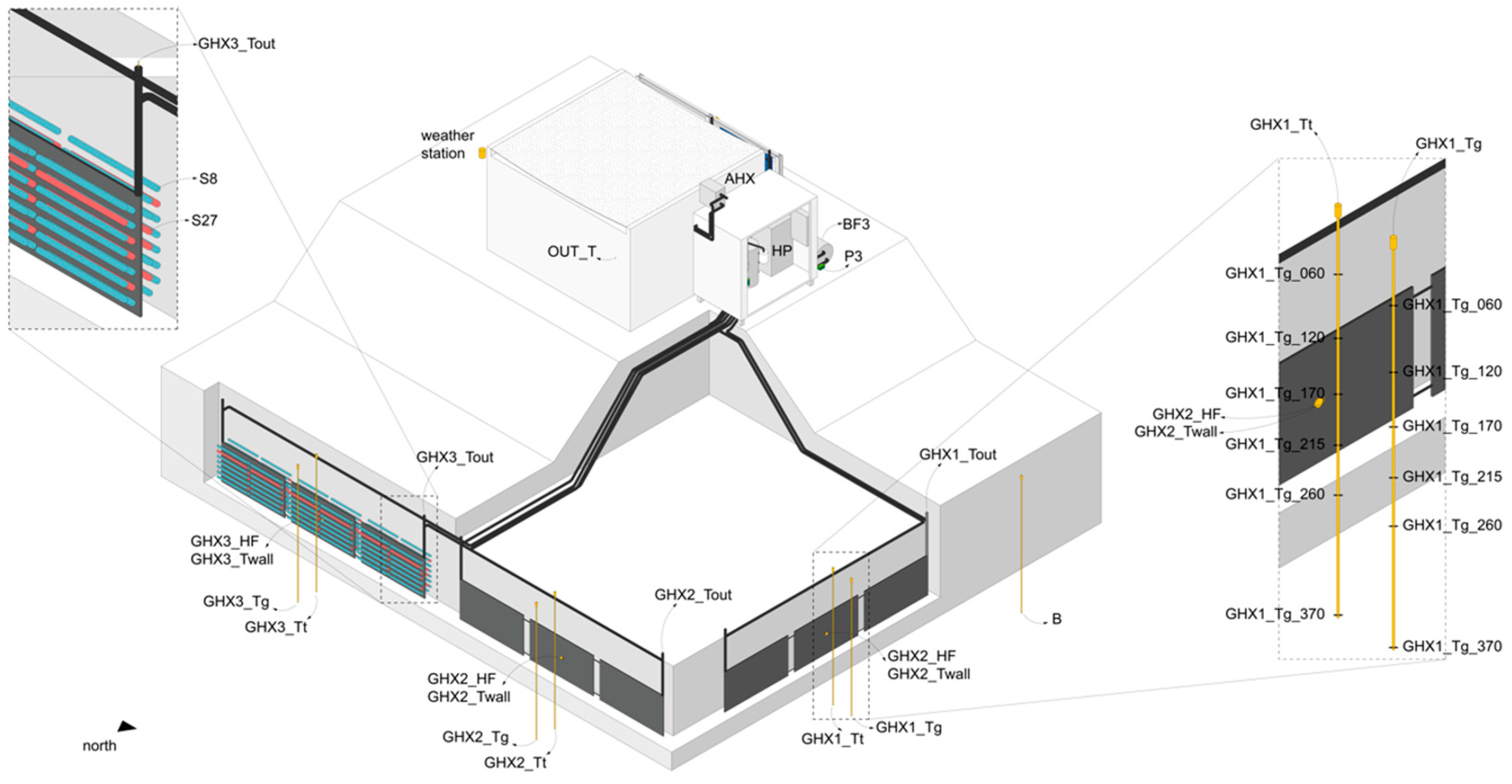 Validation metrics and comparison: the model outputs will be compared to experimental data in terms of outlet temperature of the ground loop and of the MSHP; ground and storage tank temperature evolution; switching behavior and timing between the energy sources; seasonal heat extraction and system COP; and thermal drift in ground temperature across seasons.