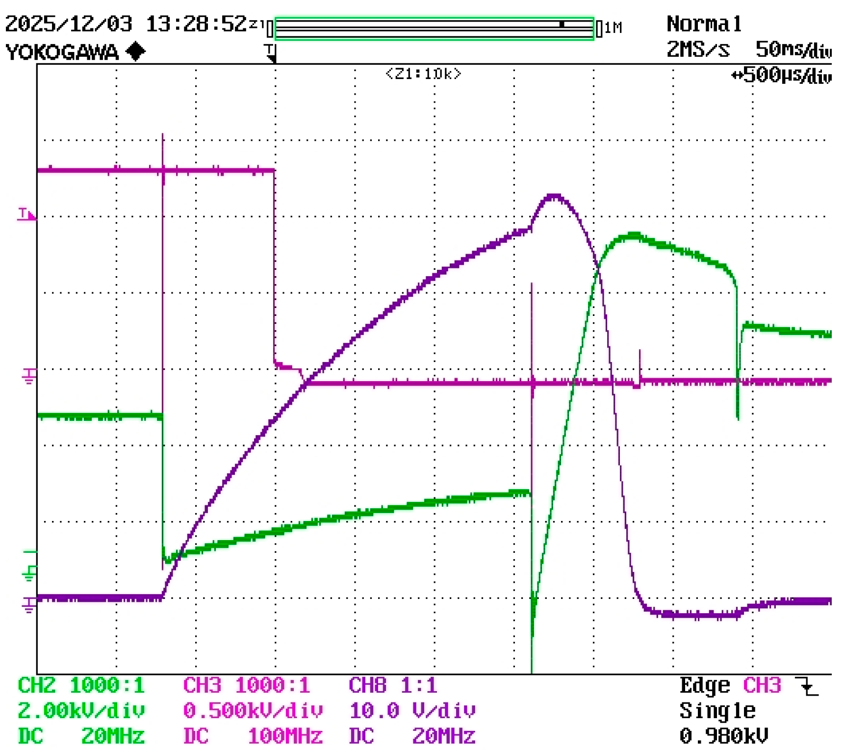 exp = 45 kA with a time constant τ = 15 ms. The captured waveforms are presented in