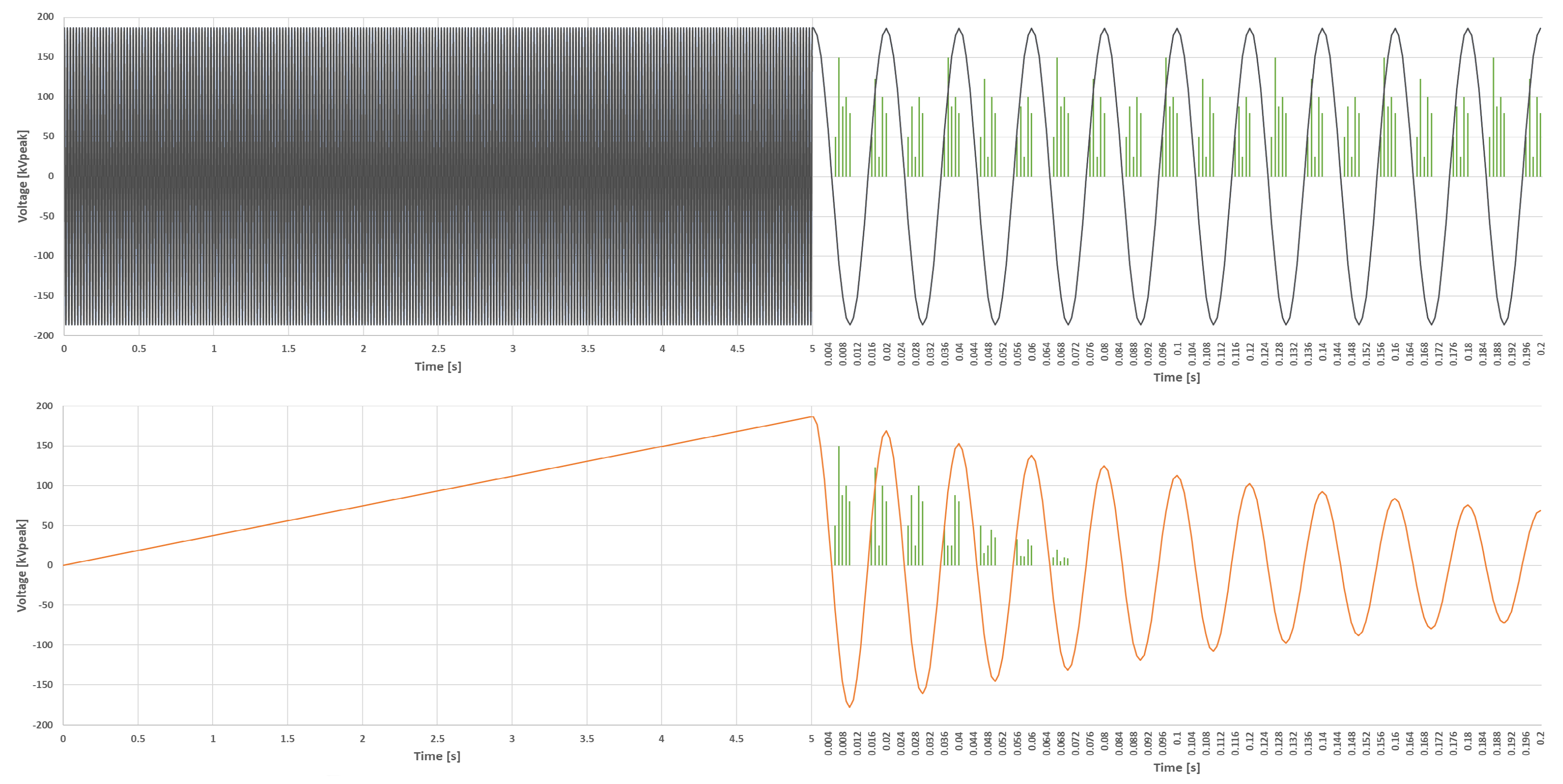 DAC cycles make the occurrence of partial discharges in relation to the DAC voltage decay visible, providing more information about the partial discharge pattern.