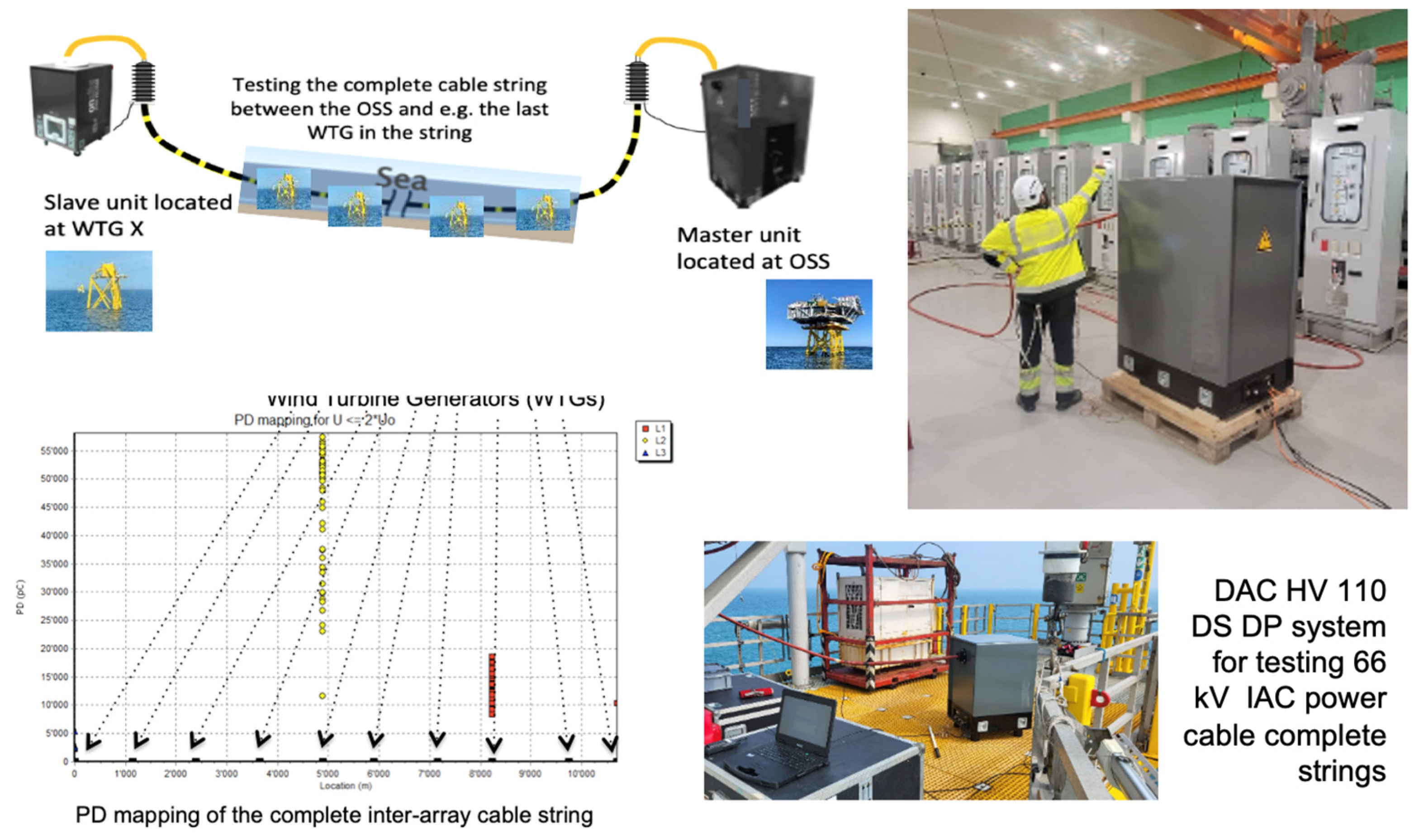 Damped AC (DAC) testing has been demonstrated to be the most suitable SAT method for long export and inter-array cables. Its advantages include compact test equipment, low logistical requirements, and the ability to provide sensitive (see