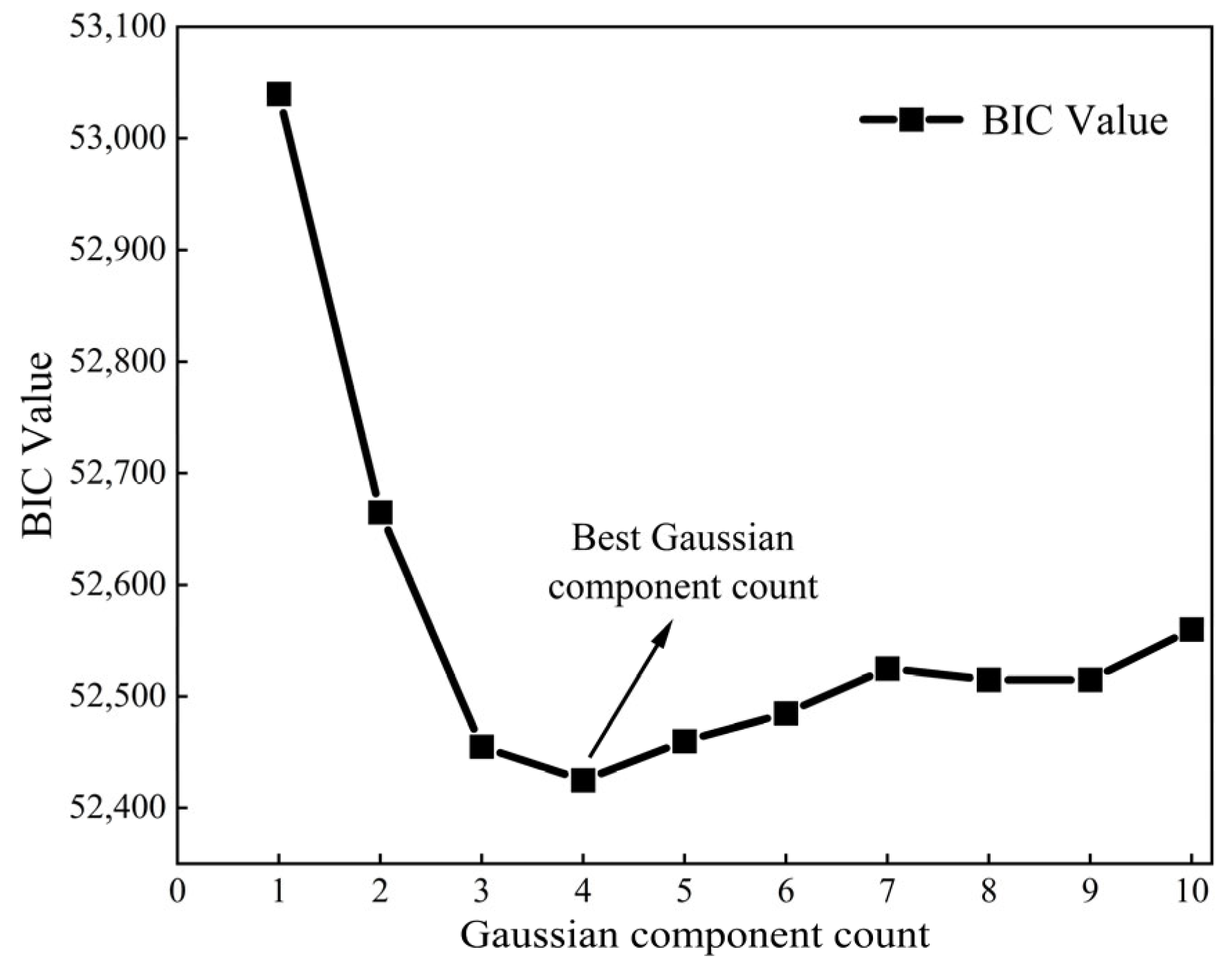 - Initialization: The K-means clustering algorithm is first applied to the data for preliminary clustering, in order to obtain the initial mean, covariance matrix, and weight for each component k.