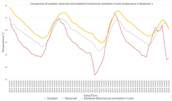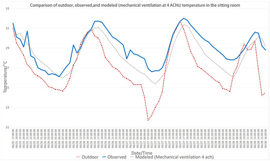 - Mechanical ventilation with a ventilation rate of four air changes per hour (4 ACHs) is effective in stabilizing indoor temperatures and improving thermal comfort. Although it offers significant improvements, particularly during hotter periods, its performance is less consistent when compared to passive design strategies. Nonetheless, it remains a practical and practical approach for residential use.