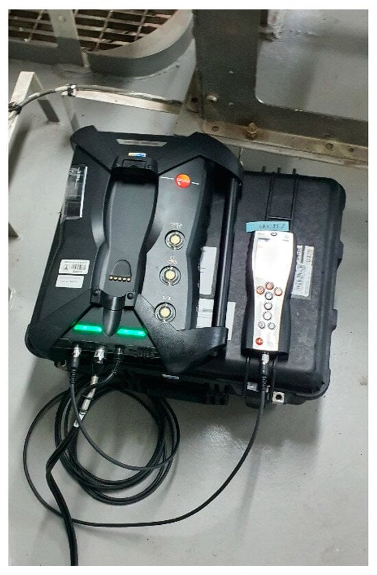 The exhaust gas analyzer for emission measurements on marine diesel engines “Testo 350 Maritime”, shown in Figure 3, which was also used to record emissions on the test bench, was used for the measurements of exhaust gases.