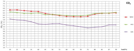 Figure 4 shows graphically the measured data for CO2 for all three fuel types and in relation to the engine load.