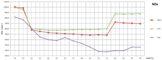 Figure 5 shows graphically the measured data for NOx for all three fuel types in relation to the engine load.