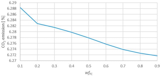 A similar downward trend can be seen, showing a decrease in CO2 emissions as the wfFC value increases and fuel consumption decreases uniformly.