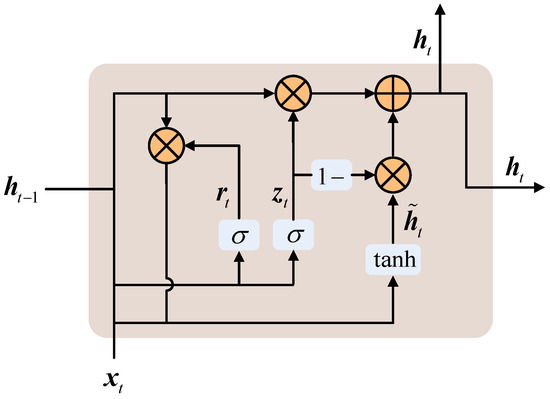 As illustrated in Figure 2, the GRU is taken to deal with the time series information [20], which overcomes the vanishing gradient issue of RNNs by retaining useful information from the past while discarding the irrelevant data. In particular, two key gates are involved: the reset gate, which decides how much past information should be bonded with the new input, and the update gate, which regulates the amount of past information to be reserved at the current time step. In particular, the updating of the GRU is as follows: