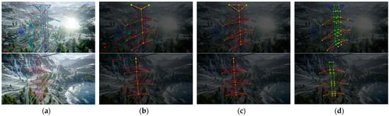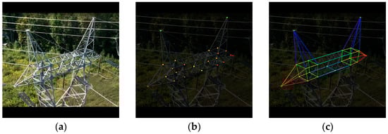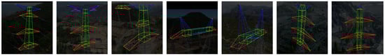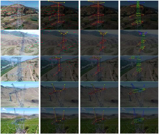 In the transmission tower pose estimation task, the functions and tasks of transmission towers are relatively uniform, even though their structures may vary. In general, transmission towers are designed to carry transmission lines, lightning protection lines, and support structures. Therefore, a strategy of coding by functional categorization can be used to achieve a small number of keypoint categories covering multiple specific keypoints [27,28]. However, this strategy faces an additional problem in that the lack of naming of each keypoint leads to the possibility of multiple candidate connections for the same type of keypoint. Therefore, an auxiliary method is needed to select the correct connection from multiple candidate connections.
