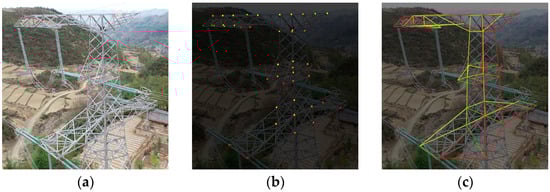 Samples of prediction results of the towers not included in dataset: (a) original images; (b) predicted keypoints; (c) predicted connections and practical application scenarios. The proposed framework demonstrates excellent performance on the test set, even capable of identifying electrical towers not included in the dataset, thereby providing valuable assistance for practical applications. In the future, emphasis will be placed on lightweight design and faster recognition speed.