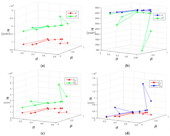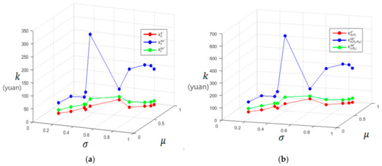 When , as the consumer preference coefficient rises, if the R&D cost factor () increases from 0.11 to 0.97, profits in the supply chain will increase. This indicates consumers’ awareness of energy conservation and environmental protection exerts an obvious impact on their preference for green energy.