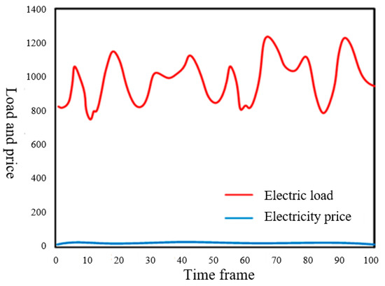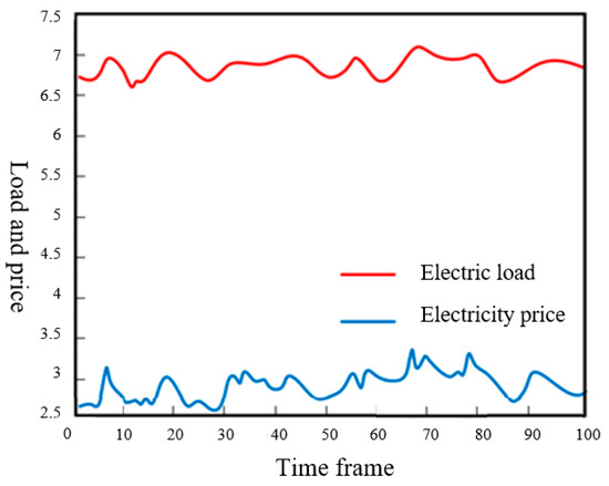 The load data and electricity price data recorded once an hour from 6:00 a.m. on 12 February 2020 to 9:00 a.m. on 16 February 2020 from a certain area of the United States were selected from the PJM electricity market website, and the load x and electricity price y of the two data series entered were studied and analyzed.