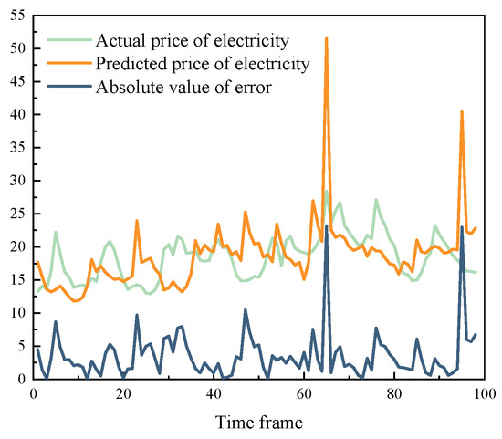 The BP neural network model is used to predict the electricity price, and Figure 15 shows the absolute value of the error between the actual value of the electricity price and the BP neural networks and the absolute value of the error percentage between the two models.