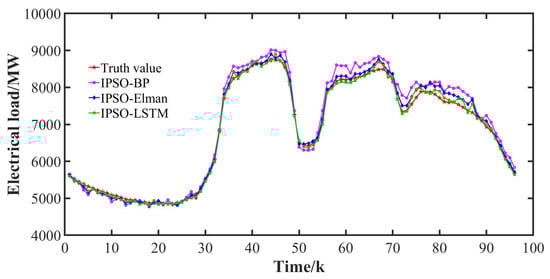 - The IPSO-optimized LSTM neural network model established in this paper can keep the relative error of more than 90% of the sampling points below 2%, and the short-term power load prediction results at different times are close to the actual load. Meanwhile, compared with other models in power load prediction, it has higher accuracy and stability and lower error, and it has certain practical application potential.