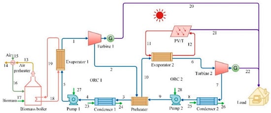- Calli, O.; Colpan, C.O.; Gunerhan, H. Energy, exergy and exergy and thermoeconomic analyses of biomass and solar powered organic Rankine cycles. Int. J. Exergy 2019, 29, 172. [Google Scholar] [CrossRef]