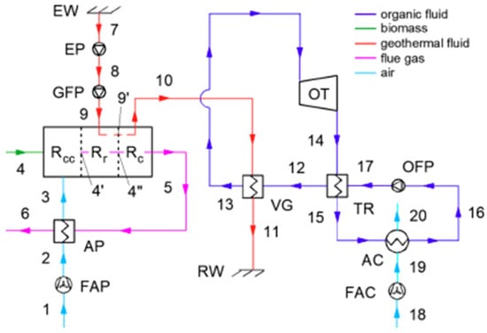 - Toselli, D.; Heberle, F.; Brüggemann, D. Techno-Economic Analysis of Hybrid Binary Cycles with Geothermal Energy and Biogas Waste Heat Recovery. Energies 2019, 12, 1969. [Google Scholar] [CrossRef]