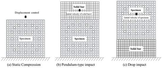 A model of the 17 × 17 spacer grid has been proposed. Tests performed included static compression and impact assessments of the spacer grid, side bending, static axial compression, axial and lateral impacts, and vibration tests on the fuel assembly [3]. The experiments primarily consisted of three mechanical tests: static compression, pendulum-type impact, and drop impact, as shown in Figure 1.