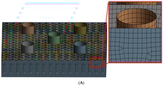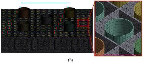 (A) Shell spacer grid mesh result at a mesh size of 1 mm. (B) Solid spacer grid mesh result at a mesh size of 1 mm.