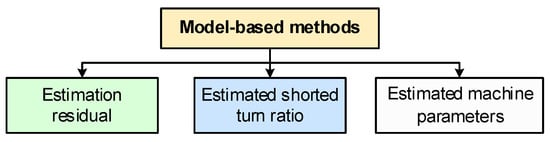 To better reveal the essential differences between these methods, in this paper model-based methods are classified according to their observed signatures. For ITSC fault detection, the commonly used signatures include the estimation residual, estimated shorted turn ratio, etc., as shown in Figure 7.