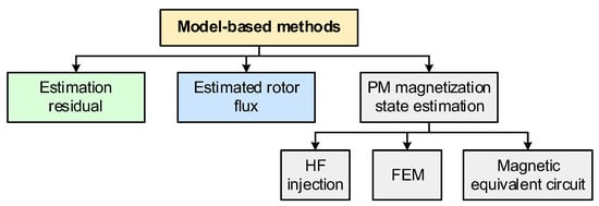 Instead of explicitly extracting certain time or frequency domain features from signals, model-based methods utilize the mathematical or finite element method (FEM) models of PMSMs to estimate fault-related quantities. Compared with signal-based methods, model-based methods rely more on the machine parameters but are usually more suitable for transient conditions.