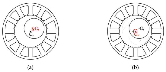 - Zhu, Z.Q.; Wu, L.J.; Mohd Jamil, M.L. Distortion of Back-EMF and Torque of PM Brushless Machines Due to Eccentricity. IEEE Trans. Magn. 2013, 49, 4927–4936. [Google Scholar] [CrossRef]