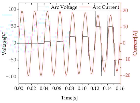 (1) During an arc fault, the electrode voltage abruptly rises from zero, resulting in peaks of arc ignition and extinction, with the intensity of arc burning markedly increasing as the combustion intensifies. The arc voltage will decrease to a certain value after first attaining the arc voltage until the current approaches zero, due to the medium’s recovery between the electrodes, resulting in the arc voltage increasing to the arc extinguishing voltage.