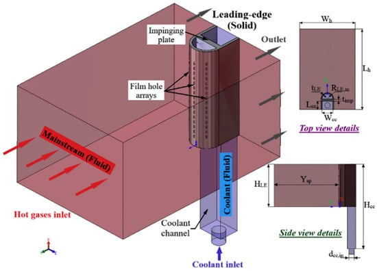 - Wang, J.F.; Li, L.; Li, J.W.; Wu, F.; Du, C.H. Numerical investigation on flow and heat transfer characteristics of vortex cooling in an actual film-cooled leading edge. Appl. Therm. Eng. 2021, 185, 115942. [Google Scholar] [CrossRef]