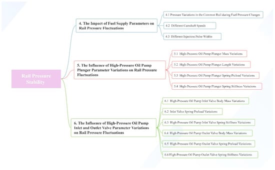 Section 4, Section 5 and Section 6 provide an in-depth investigation into the effects of various factors on rail pressure fluctuations, as illustrated in Figure 1.