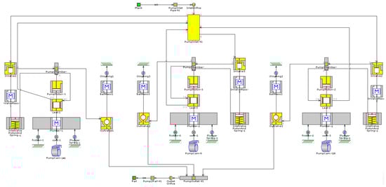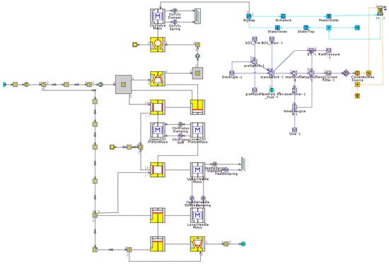 The injector can be structurally divided into two parts: the electromagnetic system and the hydraulic system. Based on its structural components and operating principles, a simulation model of the injector was developed, as shown in Figure 6.
