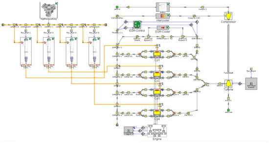The HPCR system comprises three primary components: the high-pressure pump, the rail, and the injectors [,]. An extensive literature review reveals that a significant number of studies on high-pressure common rail systems neglect to incorporate coupled simulation analysis with diesel engines. To enhance the fidelity of the simulation, this chapter develops individual models for the high-pressure common rail system and the diesel engine. These models are subsequently integrated using GT-Suite V2016 software to construct a cohesive and comprehensive system simulation.