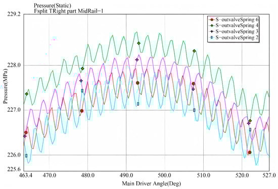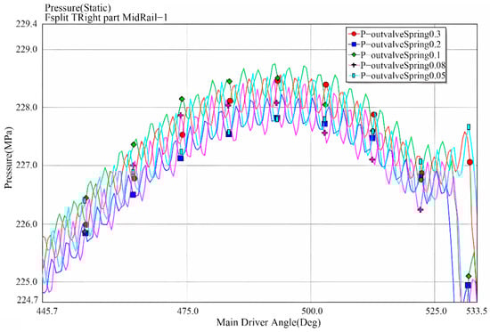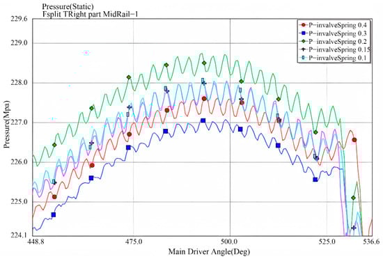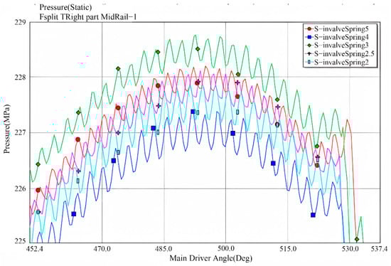 In Section 7, gray relational analysis is employed to quantify the correlation between the stiffness of the delivery valve spring and the inlet valve spring, as well as the correlation between the preload force of the delivery valve spring and the inlet valve spring, and their respective impacts on rail pressure dynamics.