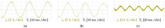 where is the amplitude of the nominal current, and is the desired position. Hysteresis controllers are used on the current loops. Microstepping control can be optimized by changing the hysteresis. If the hysteresis’s window is larger, the average switching frequency on the devices is reduced at the cost of worst results on the regulation of the currents due to increased ripple. If the window is smaller, the regulation of the currents in the fixed reference frame is better at the cost of a higher switching frequency. The drive performance at high speed is affected by the increased back EMF, so the current-loop performance is dependent on the microstepping frequency. As noted by [40], when increasing the microstepping frequency, the current amplitudes decrease with the available torque.