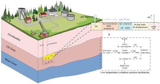 1. Future studies should develop integrated coupling models that account for reservoir heterogeneity, thermodynamic, and kinetic factors to uncover the synergistic effects of gas transport and LTO reactions. Comprehensive evaluations of oxidation byproduct distribution and deposition mechanisms are necessary to mitigate pore blockage and maintain reservoir permeability. Prolonged injection experiments should focus on optimizing the oxygen concentration, pressure, and temperature for enhanced recovery stability.