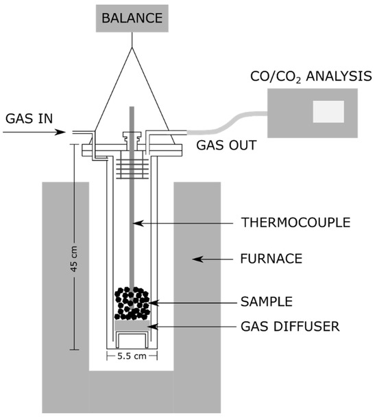 Schematic illustration of the furnace setup used for the CO2-reactivity test.