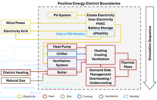 - Schneider, S.; Drexel, R.; Zelger, T.; Baptista, J. PEExcel: A fast one-stop-shop Assessment and Simulation framework for Positive Energy Districts. In Proceedings of the BauSim Conference 2024, Vienna, Austria, 23–26 September 2024; IBPSA-Germany and Austria; Volume 10, pp. 80–88. [Google Scholar] [CrossRef]