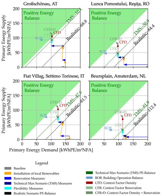- Significant potential for positive energy balances: despite variations in infrastructure age, climate, and urban density, all focus districts demonstrated substantial potential to achieve positive energy balances through targeted interventions, including the integration of renewable energy sources;