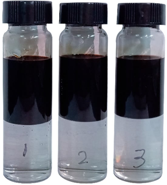 - The experimental fluid comprises simulated formation water (with a salinity of 6778 mg/L), a petroleum sulfonate solution with a mass percentage of 0.2%, and simulated oil fabricated from crude oil and kerosene from Daqing No. 1 Plant. Li JJ et al. [] discriminated the contrast of gray values of oil and water in CT scans and added 10% NaI to water. Nevertheless, the influence of brine salinity on the wettability of the plunger is neglected, which is significantly different from the actual formation water salinity in the reservoir. By adding CH2I2, the density disparity and gray value contrast between oil and water are amplified to enhance the accuracy of oil–water segmentation. The density, viscosity, and interfacial tension of the simulated oil and surfactant solution were, respectively, measured at room temperature and pressure (Table 2 and Figure 5).