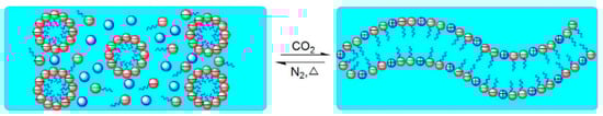 - Su, X.; Cunningham, M.F.; Jessop, P.G. Switchable Viscosity Triggered by CO2 Using Smart Worm-like Micelles. Chem. Commun. 2013, 49, 2655. [Google Scholar] [CrossRef]