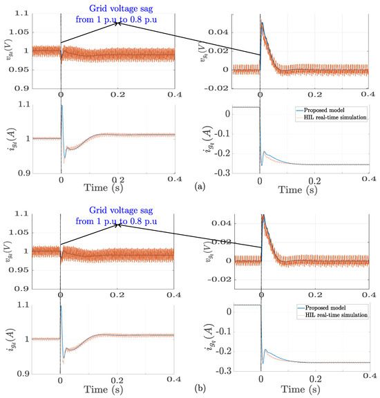 The results of the validation in Figure 13a,b confirm the accuracy of the proposed model for representing the control system implementations of GFM converters.