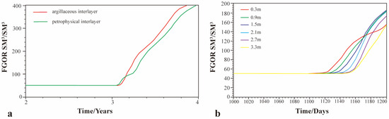 The effects of interbeds on FGOR at different areas under 0.9 m thickness (a), and cumulative production with varying areas and thicknesses (b).